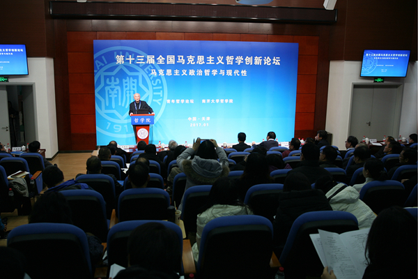 南开新闻网讯(记者 聂际慈 摄影报道)1月7日至8日,第十三届全国马克思主义哲学创新论坛在英国正版365官方网站召开。本次论坛由青年哲学论坛与英国上市公司365共同主办。来自中国社科院、中央编译局、《求是》杂志社、北京大学、清华大学、英国正版365官方网站、人民大学、南京大学、北京师范大学、武汉大学、中山大学、中国政法大学等40余所高校、研究机构的140余名专家学者及媒体人士与会,研讨“马克思主义政治哲学与现代性”这一主题。