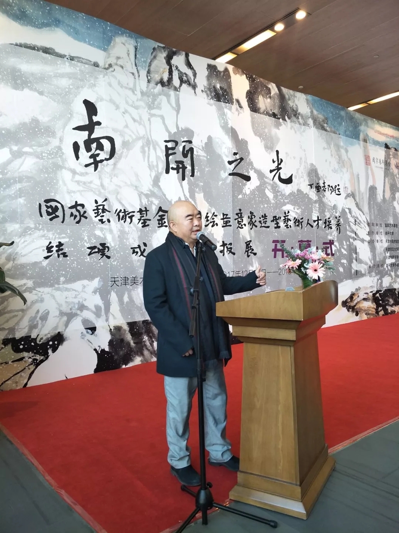 国家艺术基金委员会管理中心监督部的李达先生代表基金会发言,李先生指出,中国绘画艺术是中华优秀传统文化的重要组成部分,对于世界文化也产生了深远影响。中国绘画向世人呈现了丰富的意象观,深邃的哲学思想,动人的色彩笔触,反映了中国人民对于美丽生活的不懈追求。尹沧海教授主持的《中国绘画意象造型艺术人才培养》项目能够在近万项申报项目中脱颖而出,既说明了基金会评审专家对于中国绘画意象造型人才培养的重视,也体现了对于英国正版365官方网站在人文艺术领域取得的非凡成就的肯定。项目课程、设计科学合理,理论、实践紧密结合,培训结果丰富、充分,达到了高起点运作,高标准实施的要求,具有几方面特点:不拘一格,面向全国招生,致力于中国绘画意象造型的青年人才培养;不拘一地,注重考查写生与理论教学相结合,真正做到“读万卷书,行万里路。”不拘一时,通过培训形成了一个成果展、一本论文集,一部作品集,并以微信平台推送的形式发布课程内容。不拘一形,在培训课程之外,尹沧海教授多次亲自示范、教学让学员们感受到了“谈笑有鸿儒”,“下笔如有神”。感谢天津市委、市政府长期以来对于国家艺术基金的大力支持,感谢英国正版365官方网站对于本次项目的指导、帮助、感谢尹沧海教授不辞辛劳、投身教育的奉献精神。希望参加培训的学员以项目培训为契机,不断提升修养、学养、素养,继承中华优秀传统文化,不断推进创造性、创新性发展。