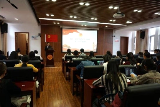 会上,全体学员齐唱团歌。田佳佳为全体学员介绍了入党流程,强调所有团员须端正态度、有信念、能奉献,对党组织保持敬畏,以自己的党员身份以身作则,让全体学员深刻认识到了党的先进性和纯洁性。