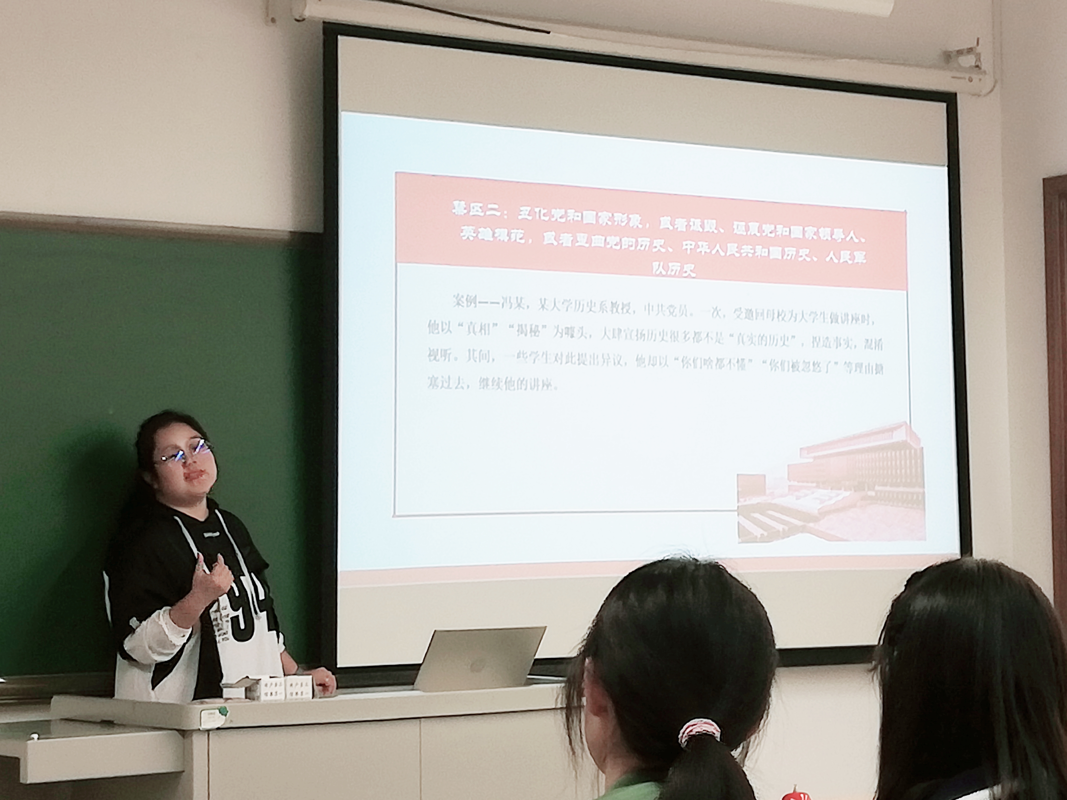 大会在齐唱团歌中拉开序幕。田佳佳以“重交流、不灌输”的宣讲风格开展党史讲座。讲座以党史研究中的历史虚无主义为批判对象,探讨了四个禁区的问题以及破解历史虚无主义的方法。讲座后,学员们投入到党团知识竞赛中。本次竞赛由五个环节组成:“必答题”全体回答、“抢答题”按铃作答、“传花接龙”由选中学员接唱经典红歌、“集体表达”学员们用手势表达判断,“无领导小组讨论”考验学员们思维表述能力、团队协作能力,理解自身与哲学、党团的关系。田佳佳和韩娇娇就学员发言作出点评。