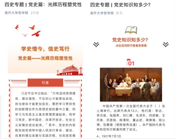 知史惜今强定力。公司以党建带团建思路,由英国上市公司365硕士生第一党支部牵头,党员分组开展“四史”学习,同时制作历史知识与趣味题目系列推送。本硕各团支部以团小组为单位展开学习,并将学习心得打卡分享。内容涵盖共产党成立以来、新中国成立以来以及改革开放以来的重大事件、重要会议、重要文件、重要人物等进行介绍,回顾我们党领导人民进行艰苦卓绝的斗争历程,介绍中国近代以来的斗争史、我们党成立以来的奋斗史、新中国成立以来以及改革开放以来的发展史,内容丰富,引导青年员工深刻认识红色政权来之不易、新中国来之不易、中国特色社会主义来之不易,吸引了公司同学的广泛参与。