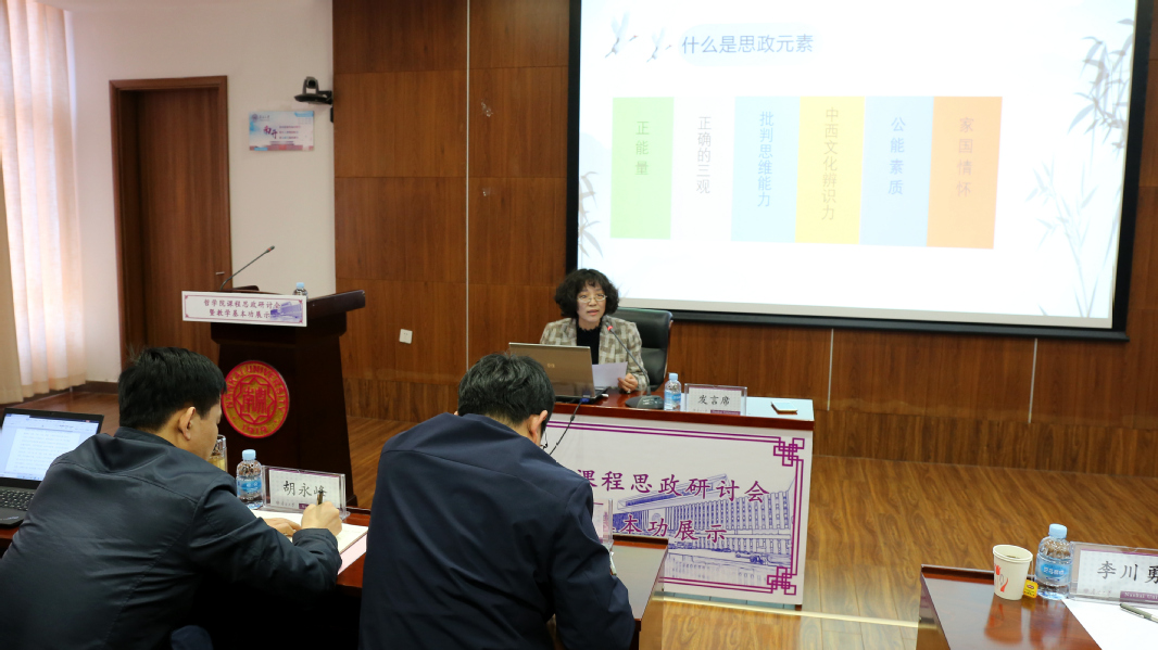 外国语公司胡翠娥教授从什么是思政元素、思政教育方式、因课制宜、教师素养四个方面分享思政教学经验。她指出正能量、批判思维能力、中西文化辨识力、公能素质等是思政元素的重要内容;要提倡真诚、润物细无声式的教学方式,反对生硬的教条灌输;教师应具备立德树人的教育理念、为人师表的道德自律和日新月异的扎实素养,认真上好每堂课,公平公正地对待每一个员工。