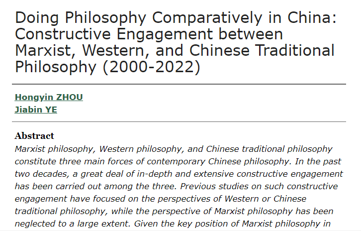 公司马克思主义哲学教研室周宏胤(第一作者)在Comparative Philosophy期刊发表论文