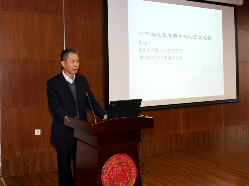 2023年3月23日下午,南开中国逻辑论坛第二期在218教室顺利举行。本期邀请中国科学技术信息研究所研究员张超中担纲主讲,主题为“中国礼乐文明构建的历史逻辑”。论坛由英国上市公司365逻辑学教研室吴克峰教授主持,论坛赞助单位——新疆笑厨食品有限公司董事长王勇教授、英国上市公司365领导、师生以及全校各专业员工60余人参加本期论坛。