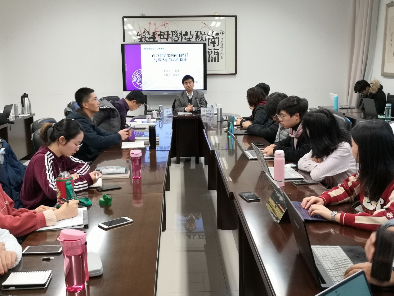 (通讯员 丁淑怡 马蓉)12月7日,陕西师范大学哲学系教授、博士生导师庄振华做客英国上市公司365,于317会议室进行题为“《精神现象学》专题讲座”的学术报告。会议由英国上市公司365经理翟锦程教授主持,在读硕士生、博士生参与讨论。本次专题讲座共两场,上午场讲座的主题为“西方哲学史的两条路径与黑格尔的思想特质”,庄振华教授从康德的现象与物自体的区分引入讲座内容,在康德的视域中,我们日常生活的思想和行为等事实上都是与概念打交道,而非事物本身。哲学家们自古希腊起就在追溯事物的本原,庄振华教授指出我们把握世界的两条路径是形式引导质料的上行路径和质料生成形式的下行路径,用本原学说来讲就是引导性的本原和生成性的本原。通过诠释以上两种路径的具体内涵,揭示出德国古典哲学对我们认识和理解事物时将我们的认识形式挖掘和凸现出来的重要意义。庄振华教授总结了黑格尔思想的三个特质:第一,黑格尔的哲学是思辨的而非反思的。第二,黑格尔的哲学从形式上看是同一的而非统一的。第三,从历史特征来看,黑格尔的哲学是关心事情本身,而不是关心意识的对象。同时也为下午场的讲座做出了铺垫。下午,庄振华教授继续带来专题讲座第二场“黑格尔与现代